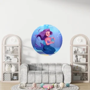 Breng een vleugje magie in de kamer met de Muurcirkel Sticker Zeemeermin! Deze betoverende muurcirkel neemt je mee naar een prachtige onderwaterwereld vol kleur, rust en fantasie. Perfect voor kleine dromers die houden van zeemeerminnen, de zee en een vleugje avontuur.