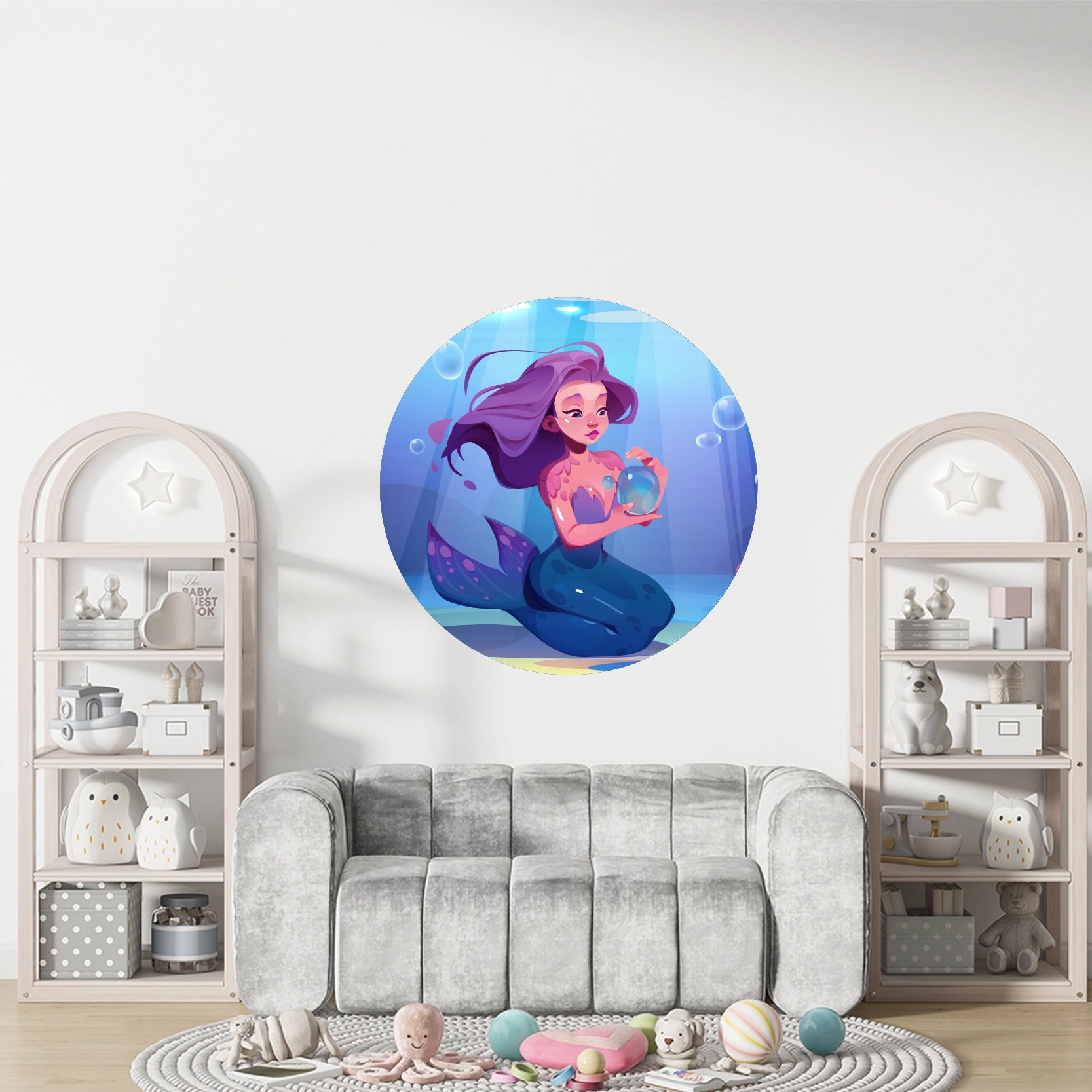 🧜♀️ Muurcirkel Sticker Zeemeermin – Droom weg in een magische onderwaterwereld